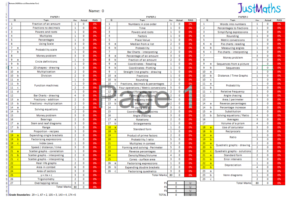 RAG paper for November 21 Edexcel Foundation P1 is now available for use following mocks etc. The other papers in this series are on their way and I will update this accordingly.